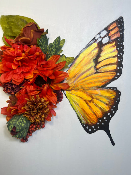 Orange Floral Butterfly Original Painting